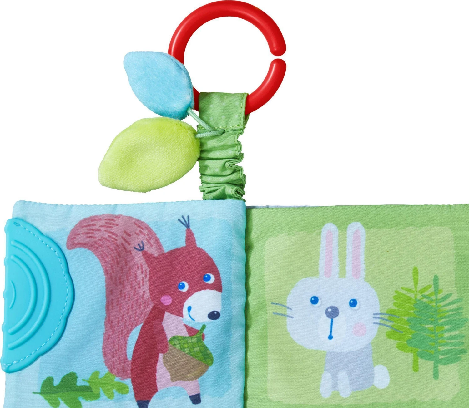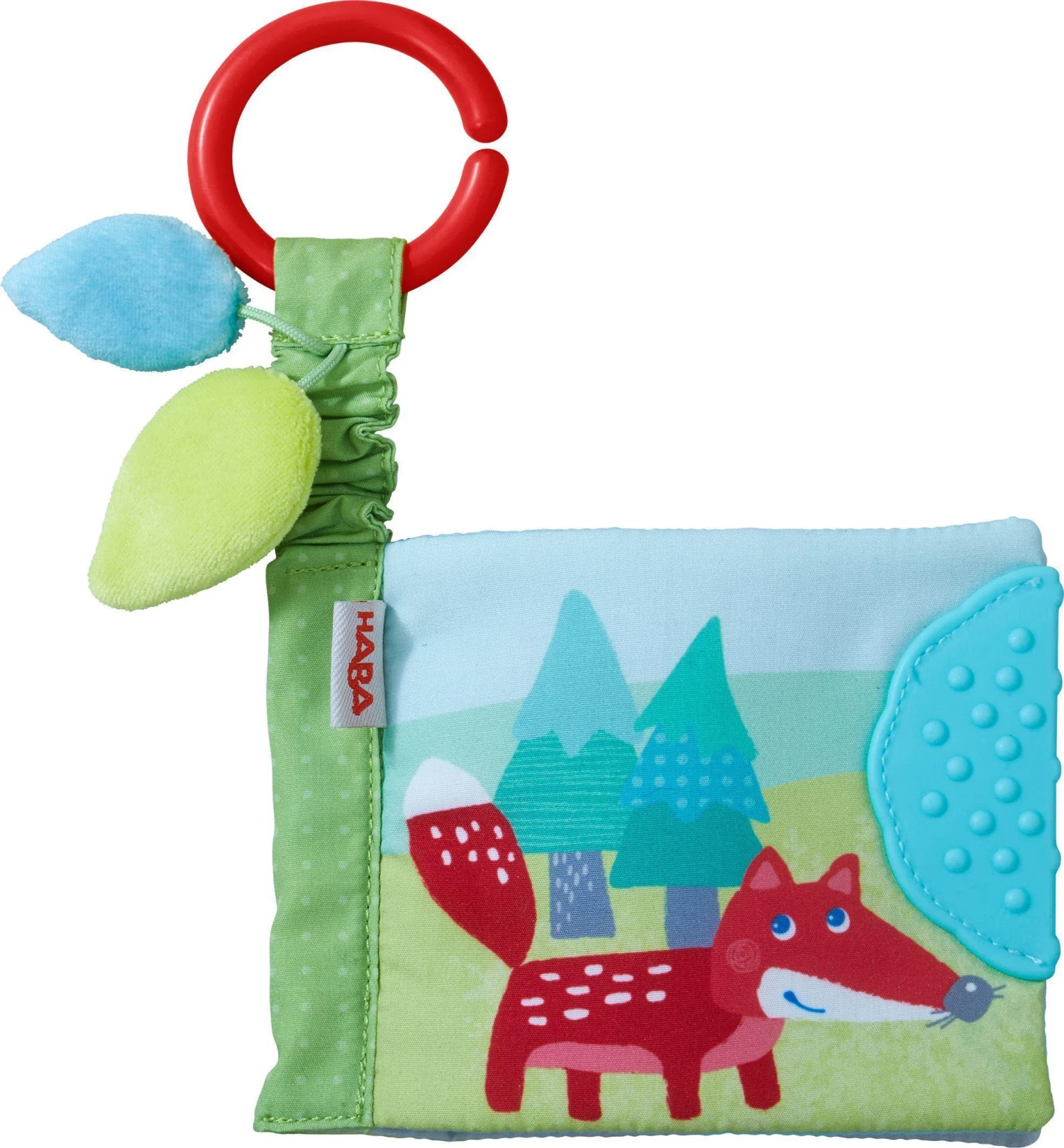 Kleine Tierfreunde erleben erste Bilderbuch-Abenteuer mit dem Buggybuch Waldtiere von HABA. Das weiche Buch für Babys ab 6 Monaten lädt mit zauberhaften Tierbildern, Quietsche und Knisterfolie zum Schauen und Staunen ein. Die akustischen Effekte regen die Wahrnehmung der Kleinen an. Das Bilderbuch aus Stoff ist mit einem Beißelement ausgestattet. Das hilft beim Zahnen, wenn die Babys das Spielzeug mit dem Mund erkunden. Kleine Kinderhände können die Buchseiten prima greifen und umblättern. Ruckzuck lässt sich das Babybuch am Buggy befestigen für Entdecker-Spaß zuhause und unterwegs mit HABA.