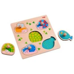 Der Bahnhof für die Kullerbü-Spielbahn von HABA ist eine große Spielkulisse für Kinder ab 2 Jahren. Über die abwechslungsreichen Holzschienen fährt ein moderner Schnellzug. Die drei Waggons lassen sich aufklappen, damit die drei Charakterkugeln ein- und aussteigen können. Lockführer Loris, Dina und Uli sind auf der Reise durch Kullerbü. Das Glöckchen signalisiert ihre Ankunft im Bahnhof. Schnell die Rolltreppe hinunter zum Taxi! Das Kullerbü-Auto mit Schwungmotor ist besonders schnell unterwegs auf der Spielbahn wie auf dem Fußboden. Doch über die Kreuzung darf es nur bei geöffneten Schranken fahren. Mindestens sechs Aufbauvarianten und die detailreiche Gestaltung sorgen für Abwechslung und großen, langanhaltenden Spielspaß!