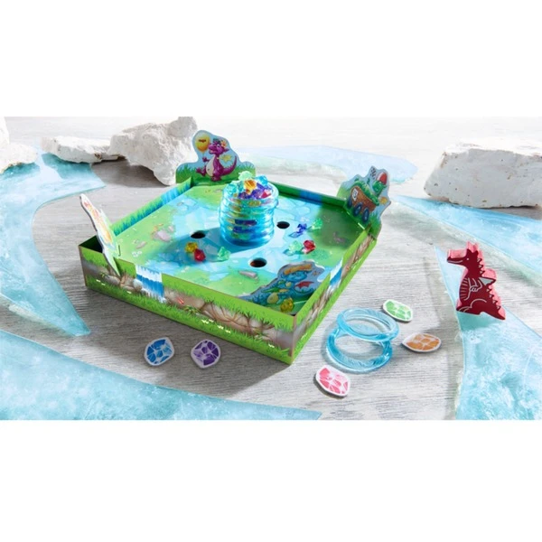 Die Drachenkinder haben einen ungewöhnlichen Schatz entdeckt: eine Eis-Säule mit eingefrorenen Funkelsteinen. Die wollen alle natürlich gerne haben. Zusammen mit Papa Drache entfernen die Spieler einen Eis-Ring nach dem anderen und bringen die Eis-Säule zum Schmelzen. So purzeln die Funkelsteine herunter. Aber aufgepasst: Es können nur bestimmte Funkelsteine eingesammelt werden. Wer besitzt am Ende die meisten Funkelsteine?Art.-Nr.: 1429080