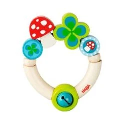 Der aus Buchenholz gefertigte Greifling Glücksbringer von HABA lädt zum Greifen, Entdecken und Spielen ein. Das kleine Glöckchen macht angenehme Geräusche, die Baby immer wieder hinhören lassen. Greifling mit bunten Holzelementen und Glöckchen 10 cm Durchmesser aus Buchenholz ab 10 Monaten Mit seinen klassischen Motiven wie Fliegenpilz und vierblättrigem Kleeblatt bringt der Greifling von HABA dem Nachwuchs Glück. Das Spielgerät wird Baby immer wieder zum Anfassen, Greifen, Drehen und Bewegen anregen. Die lustigen Geräusche des kleinen Glöckchens laden zum amüsierten Hinhören ein. Der sympathische Greifling Glücksbringer von HABA aus robustem Buchenholz eignet sich bereits am dem 10.Lebensmonat.