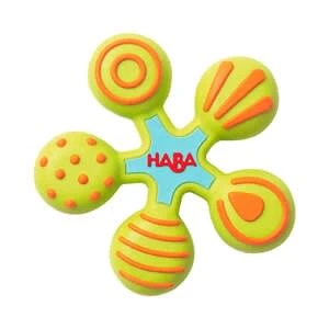Gefertigt aus robustem Silikon, kommt der in Stern-Form designte Greifling von HABA auch als Zahnungshilfe zum Einsatz. Greifling im Stern-Design von HABA auch als Zahnungshilfe verwendbar ab 6 Monaten aus Silikon Mit der Stern-Form und seinen abgerundeten Kanten lässt sich der Greifling auch von kleinen Händen gut greifen. Leuchtende Farben und unterschiedlich strukturierte Oberflächen sprechen den Seh- und Tastsinn der Kleinsten an. Da der Greifling aus Silikon gefertigt ist, kann er bedenkenlos in den Mund genommen werden. Beginnt der Nachwuchs zu zahnen, verschafft das Beißen auf dem Silikon-Stern Linderung.