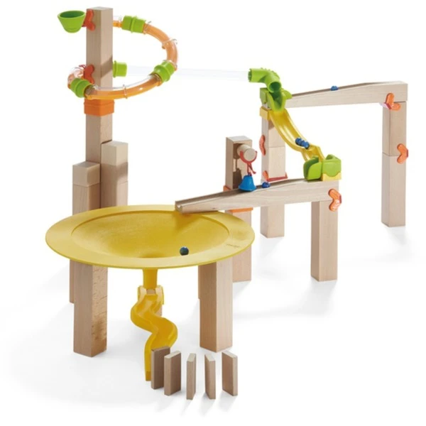Diese Grundpackung aus der Kugelbahn-Serie von HABA lädt zum Experimentieren mit Geschwindigkeit, Kraft und Höhe ein. Sie bietet hohe Variabiiltät und eine Vielzahl von tollen Elementen wie die Funnelkurven, die Speedröhren oder die Powerpulser-Bahn, in der ankommende Murmeln den Impuls an liegende Murmeln weitergeben. Im Big Speedcircle rasen die Murmeln im Kreis: erst langsam, dann immer schneller. Diese Kugelbahn bietet Kindern ab 4 Jahren langanhaltendes Spielvergnügen.Art.-Nr.: 1446255