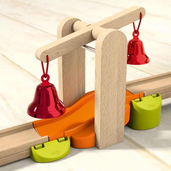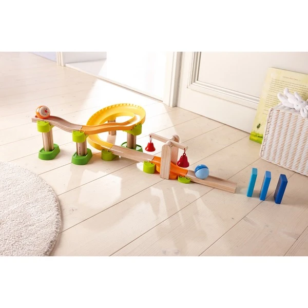 | Inhalt/Ausstattung | Inhalt: 1 Glöckchen-Wippe, 1 Kugel-Steilkurve, 9 Verbindungselemente, 1 Wellenkurve, 2 Geraden, 1 Rampe, 1 Startstein, 4 Säulen, 1 Kugel Paul, 1 Effektkugel, 3 Dominosteine. Das Set enthält insgesamt 23 Teile. | ||
