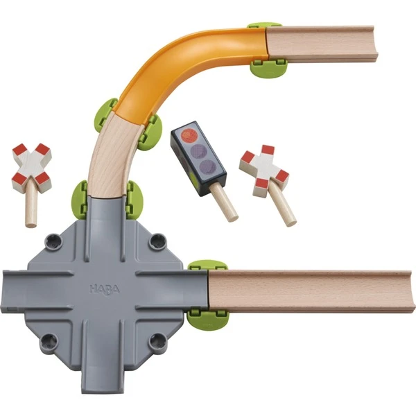 Das Tolle an den Kullerbü-Bahnen von HABA ist, dass sie durch ein neu entwickeltes Klick- und Stecksystem schon für kleinere Kinder leicht aufzubauen sind und selbst im größten Spieleifer nicht umkippen. Alle Elemente wie Säulen, Rampen, Kurven, Basen und Verbinder sind flexibel miteinander kombinierbar. Beim Ergänzungsset Straßenkreuzung bringt eine Straßenkreuzung mit Ampel, Verkehrszeichen, Kurven und Wellenkurve sowie mehreren Geraden jede Menge Abwechslung ins Kullerspiel. Die grünen Bodenverbinder halten dabei alle Bahnstrecken stabil zusammen und sorgen für extralanges Kullervergnügen. So ist das Ergänzungsset Straßenkreuzung eine prima Erweiterung für jede Kullerbü-Spielbahn!Art.-Nr.: 1445905