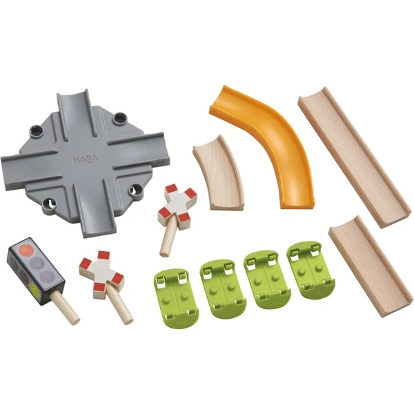 | Inhalt/Ausstattung | 1 Straßenkreuzung, 1 Ampel, 2 Verkehrszeichen, 2 Geraden, 1 Wellenkurve, 1 Kurve (30°), 4 Bodenverbinder. | ||