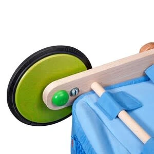 Mit dem farbenfrohen Holz-Lauflernwagen von HABA sind kleine Entdecker sicher unterwegs. Holz-Lauflernwagen Farbenspaß von HABA mit bunten Spielscheiben am Griff Stoff-Transportfach gummierte Räder individuell justierbare Bremse ab 10 Monaten aus Buche und Polyester, Räder mit Silikon-Laufflächen Der HABA-Lauflernwagen ist nicht nur optisch ein Highlight: Die großen Vorderräder sorgen für einen stabilen, kippsicheren Stand und Sicherheit bei den ersten Steh- und Gehversuchen. Damit der Wagen nicht zu schnell rollt, lässt er sich mit einer individuell justierbaren Bremse bremsen. Die Räder sind zusätzlich mit Silikon-Laufflächen versehen, was das Schieben einfach macht und empfindliche Böden schont. Vorne am Lauflernwagen ist ein Stofffach angebracht. Hier finden Kuscheltiere und Spielsachen bequem Platz, um die kleinen Entdecker zu begleiten. Über einen Klettverschluss lässt sich das Fach leicht entfernen und bei 30 °C im Schonwaschgang waschen. Hat der Nachwuchs mal keine Lust aufs Laufenlernen, laden die bunten Scheiben am Griff zum Spielen ein. Ganz nebenbei werden so die Sinne und die Feinmotorik geschult.