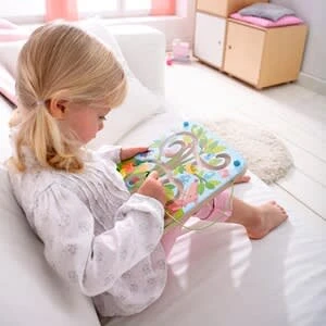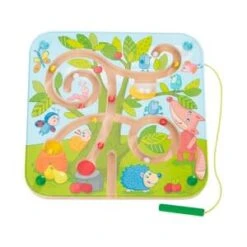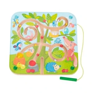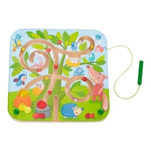 Das tolle Magnetspiel Baumlabyrinth von HABA ist ein spannendes Geschicklichkeitsspiel, an dem sowohl Mädchen als auch Jungen ab 2 Jahre viel Freude haben werden. ab 2 Jahre für 1 Spieler 1 Magnetspiel mit farbigen Kugeln und 1 Magnetstab Geschicklichkeitsspiel trainiert die Hand-Augen-Koordination Das hochwertig verarbeitete Baumlabyrinth ist genau das richtige Spielzeug für kleine Gartenfreunde. Mithilfe des Magnetstabs sortieren die Kleinen Eier, Apfel und Birnen in die dafür vorgesehenen Körbe und Nester. Dabei sind nicht nur Geduld und Konzentration gefragt. Mit diesem cleveren und pädagogisch wertvollen Geschicklichkeitsspiel trainieren Kinder auch die Hand-Augen-Koordination und die Feinmotorik. ACHTUNG: Nicht geeignet für Kinder unter 18 Monaten wegen langer Schnüre. Strangulationsgefahr.