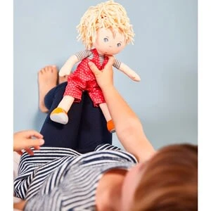 Spielen, kuscheln, trösten: Die niedliche Puppe Cassie von Haba begleitet sämtliche Alltagsabenteuer des Nachwuchses. Puppe Cassie von Haba mit Zopfgummi frisierbare Haare aus Chenille ausziehbare Latzhose mit Klettverschluss 30 cm aus waschbaren Textilien ab 18 Monaten geeignet Mit Cassie ist immer etwas los: Die 30 Zentimeter große, aus weichen Textilien gefertigte Puppe begleitet Kinder ab 18 Monaten durch den Alltag. Cassie spendet Trost, steht für Schmusestunden zur Verfügung und begleitet zahlreiche Rollenspiele des Nachwuchses. Die kleinen Puppenmütter und -väter nehmen im Spiel andere Perspektiven ein und schlüpfen in neue Rollen. Sie schulen ihre sozialen Kompetenzen und erweitern ihren Wortschatz durch das Ausdenken fantasievoller Geschichten. Außerdem können die Kids Cassies flauschige Chenille-Haare frisieren und die rote Latzhose an- und ausziehen. Das sorgt zum einen für Abwechslung im Spiel und wirkt sich zum anderen positiv auf die feinmotorischen Fähigkeiten aus. Praktisch: Die niedliche Puppe mit dem aufgestickten Gesicht kann bei Bedarf bei bis zu 30 Grad Celsius gewaschen werden.
