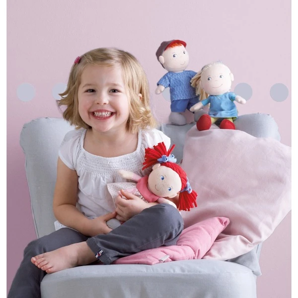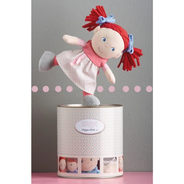 Wache Augen, ein süßes Lächeln und eine wilde feuerrote Mähne: Das ist die Puppe Mirli. Ihr weicher und anschmiegsamer Körper sind genauso, wie es Kleinkinder lieben. Mirli hilft beim Einschlafen, tröstet, wenn mal was weh tut, oder strahlt dank liebevoll aufgesticktem Gesicht mit ihrer Puppenfreundin um die Wette. Mirlis freche Zöpfchen laden Kleinkinder geradezu ein, danach zu greifen und damit zu spielen. In der hochwertigen Geschenkverpackung ist Mirli ein schönes Geschenk zur Geburt.Art.-Nr.: 1362071