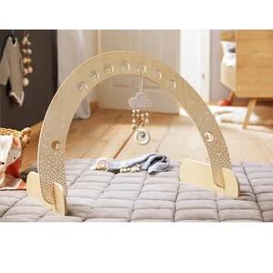 Das Spieltrapez Pünktchen von Haba lässt sich individuell mit Greiflingen und Figuren gestalten. Das simple Steck-Design ist schnell und unkompliziert auf- und wieder abgebaut. Spieltrapez Pünktchen von Haba mit verschiedenen Haken zum Aufhängen von Figuren und Greiflingen dezentes Design mit Punkten schnell ab- und aufbaubar aus Birkenholz ab der Geburt geeignet Das Spieltrapez Pünktchen von Haba punktet mit individuellen Gestaltungsmöglichkeiten. Die verschiedenen Haken bieten Platz zum Aufhängen von Greiflingen und Figuren. Diese lassen sich vom Baby in Rückenlage entdecken und ertasten. Der Bogen eignet sich durch sein dezentes Design mit Punkten als Basic für die Erstausstattung. Er lässt sich schnell und unkompliziert stabil zusammenstecken. Auseinendergebaut kann er platzsparend verstaut werden. Dank des Buchenholzes ist der Spielbogen obendrein robust und langlebig. Hinweis Das Spieltrapez sollte nur solange verwendet werden, bis das Kind krabbeln kann.