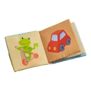Im Stoffbuch von Haba entdecken die Kleinsten ab sechs Monaten die bunte Welt des kleinen Frosches. Stoffbuch Zauberfrosch von Haba mit rasselnder Froschfigur, knisternder Einstecktasche und Fühl- und Spielelementen Buchrückseite mit Entdeckerfolie in Wasser-Optik ca. 13,5 cm groß aus Stoff ab 6 Monaten Das Stoffbuch eröffnet den Kleinsten eine kunterbunte Spiel- und Fühlwelt: Die lustige Froschfigur rasselt und die Einstecktasche knistert. Viele Fühl- und Spielelemente und die Buchrückseite mit Entdeckerfolie in Wasser-Optik erhöhen zusätzlich den Spaßfaktor. Mit dem spannenden Stoffbuch können die Kleinen stundenlang die Welt des kleinen Zauberfrosches erforschen.